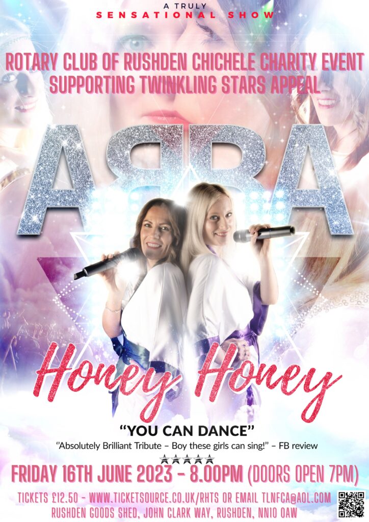 The Rotary Club of Rushden Chichele presents ABBA Honey Honey in aid of the Twinkling Stars Appeal in the Goods Shed