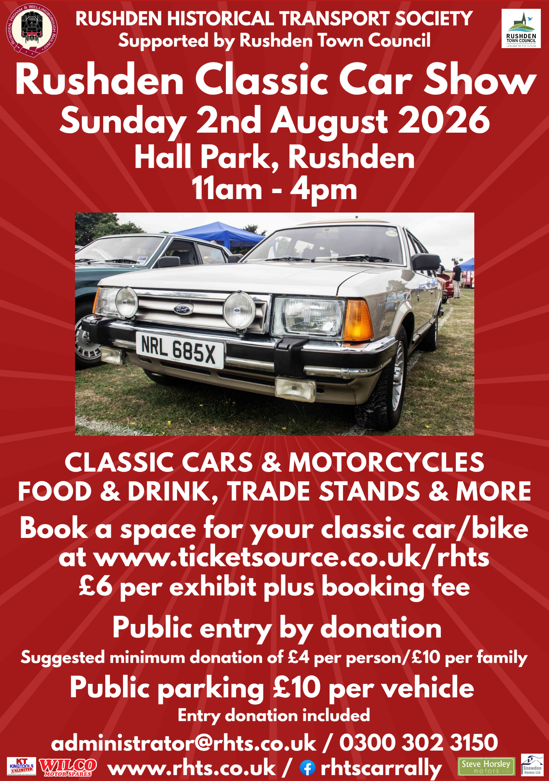 Rushden Classic Car ShowSunday 2nd August 2026 in Hall Park, Rushden.Classic Car/ Bikes: To book in your vehicle go to www.ticketsource.co.uk/rhts or email administrator@rhts.co.uk There will be over 400 classic cars and bikes for you to see plus 40 local small businesses selling their gifts and crafts.Hot and cold food will be available to purchase and you […]